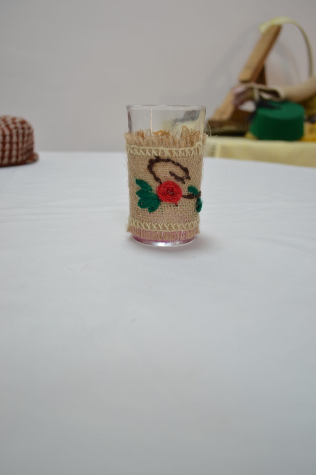 Une housse en toile de jute brodée, conçue pour habiller vos bouteilles avec style. Un accessoire idéal pour les occasions spéciales ou les tables décorées.