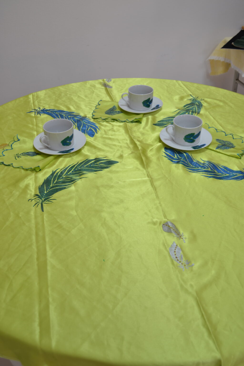 Cette nappe colorée, brodée de fleurs à la main, embellit vos repas avec une touche artistique et authentique. Accompagnée d’un service à thé assorti pour une présentation raffinée.